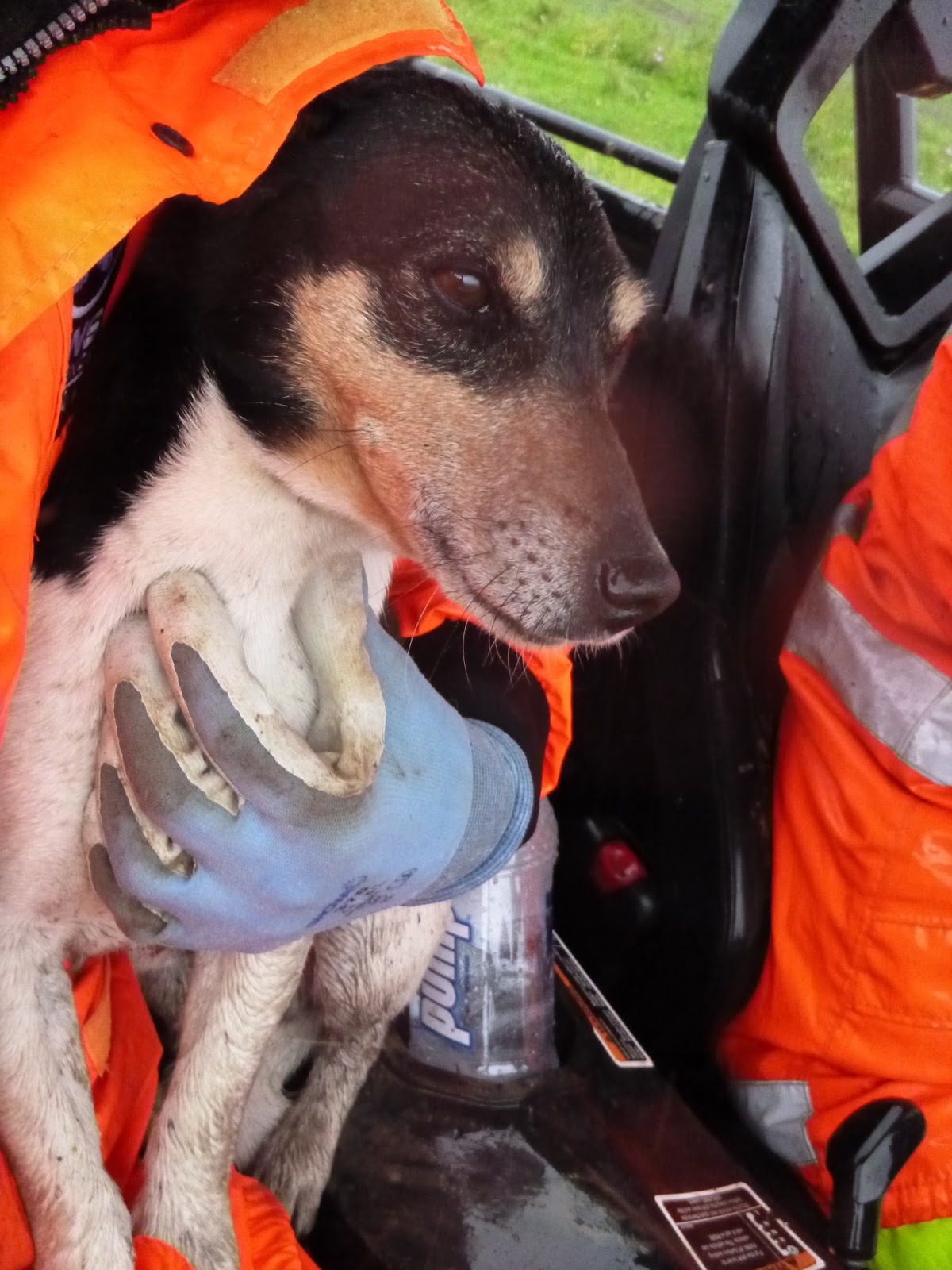 | Murphy the farmers dog didn't like the thunder and caught | a ride home with us |